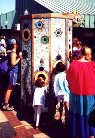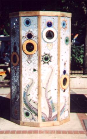 Pentagonal (10-sided) with 5 Teleidoscopes of varying angles & number of mirrors. Height: 2.2 meters / width 1.5 meters |