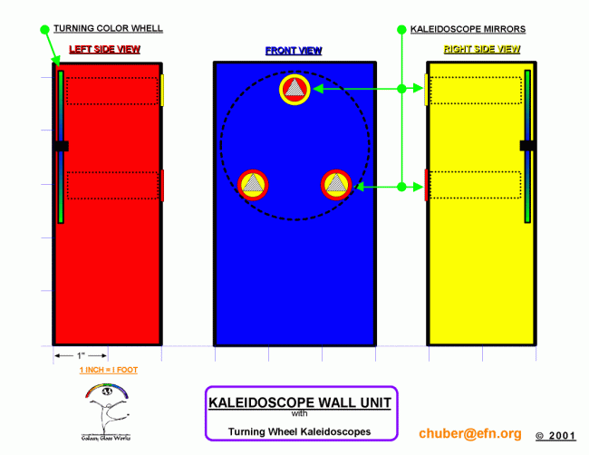 The "Kaleidoscopes with color turning wheel" is a classic Kaleidoscope interpretation. The 3 viewing portals allow the viewers to watch the turning color wheel create ever changing Kaleidoscopic images. A motor rotates the wheel. Price: $5000.00 + Shipping PRICE INCLUDES: